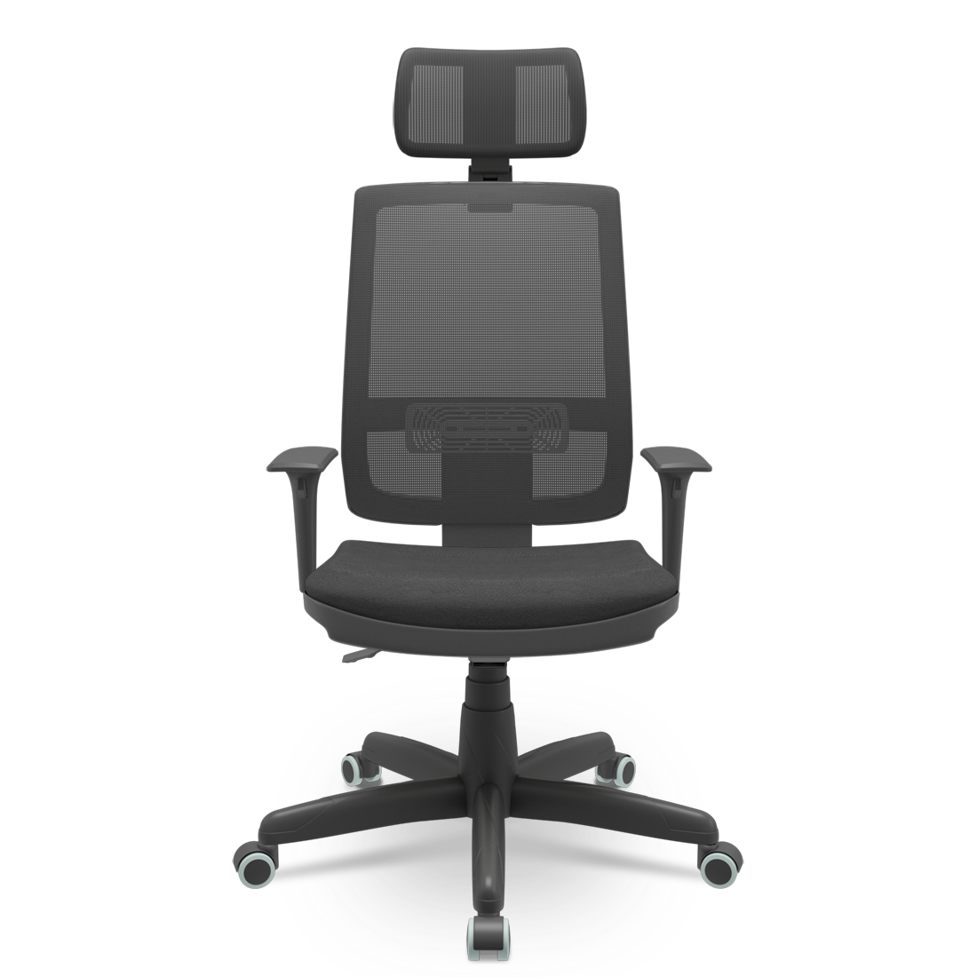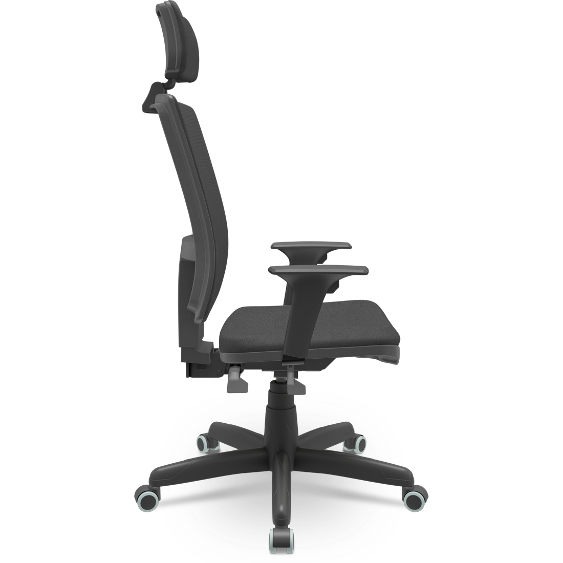 A Cadeira Presidente Plaxmetal é uma excelente escolha para quem busca conforto, durabilidade e um design moderno em ambientes corporativos. Com um encosto e apoio de cabeça feitos em tela respirável, ela proporciona ventilação contínua, mantendo o usuário fresco mesmo durante longas jornadas de trabalho. O assento estofado, revestido com tecido poliéster preto de alta qualidade, garante conforto e resistência, tornando essa cadeira ideal para uso diário em escritórios e home office.